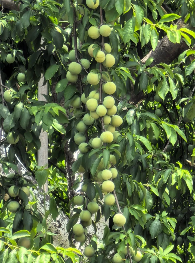 一顆顆渾圓飽滿的三華李綴滿枝頭