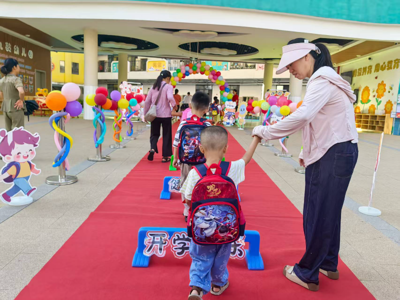 而在九齡幼兒園,老師們用心打造了一場儀式感十足的開學禮。紅毯鋪地,跨欄迎新,氣球拱門色彩斑斕,鑼鼓舞獅熱鬧非凡,天真爛漫的孩子們在家長的陪伴下,滿心歡喜地踏入幼兒園。