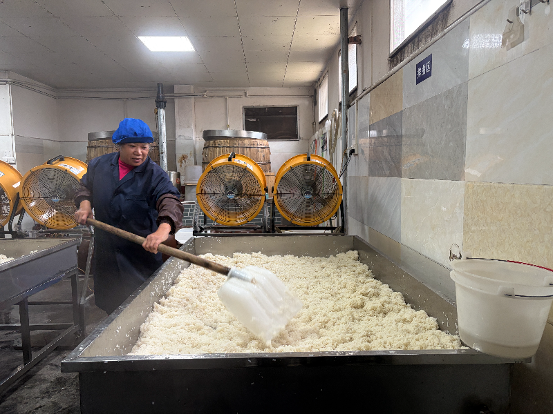走進(jìn)城南鎮(zhèn)周前村的前山家酒廠,醇厚的酒香撲面而來(lái)。生產(chǎn)車間里,工人們各司其職,操作有條不紊:飽滿的大米先經(jīng)清水沖洗,再分盤送入蒸鍋高溫蒸煮,出鍋后均勻攤開(kāi)降溫,最后小心翼翼裝入陶制酒罐,轉(zhuǎn)運(yùn)至發(fā)酵間進(jìn)行陳釀。每一道工序既保留了傳統(tǒng)釀酒的匠心,又展現(xiàn)出規(guī)模化生產(chǎn)的規(guī)范。酒廠負(fù)責(zé)人林明介紹說(shuō),他之前在佛山打工、經(jīng)商十多年,后面看中了客家米酒的發(fā)展?jié)摿?選擇回家鄉(xiāng)創(chuàng)業(yè)。