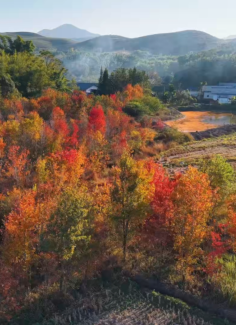 當冬日的筆觸輕拂始興大地,沈所鎮狐貍坑村的楓樹林便褪去青澀,潑灑出最濃烈的色彩。楓林間紅葉似火、金葉如霞,與蒼翠山林交織成一幅流動的冬日“楓”景畫,成為本地及周邊游客追尋詩意、定格浪漫的生態打卡地,讓這個冬天的始興,多了一抹治愈的亮色。