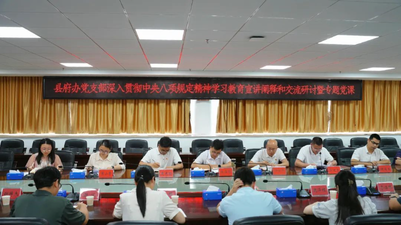 6月4日,縣長(zhǎng)王在騰以普通黨員身份參加縣府辦黨支部開展深入貫徹中央八項(xiàng)規(guī)定精神學(xué)習(xí)教育宣講闡釋和交流研討暨專題黨課,傳達(dá)學(xué)習(xí)習(xí)近平總書記關(guān)于加強(qiáng)黨的作風(fēng)建設(shè)的重要論述精神和習(xí)近平總書記關(guān)于深入貫徹中央八項(xiàng)規(guī)定精神學(xué)習(xí)教育的重要講話和重要指示精神,推動(dòng)學(xué)習(xí)教育走深走實(shí)。