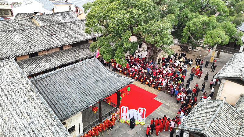 本次新春巡游的起點(diǎn)——周前古村,這里作為第五批中國傳統(tǒng)村落,核心區(qū)的周前古墟始建于乾隆年間,是韶關(guān)市保存最完整的古村落之一,村中留存的古戲臺、清涼寺塔等建筑,承載著當(dāng)?shù)厣詈竦目图椅拿}。當(dāng)古村落遇見巡演,老街巷紅燈籠掛滿枝頭,鄉(xiāng)親們圍在古街道兩側(cè),共同感受這場家門口的新春盛宴。