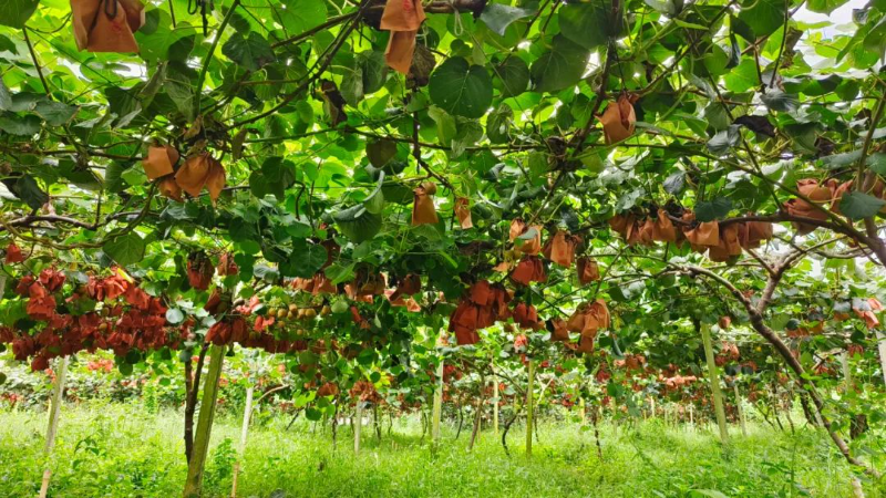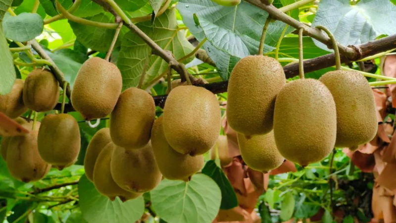 踏入獼猴桃種植基地,仿佛置身于一片綠色海洋,蔥郁的藤蔓沿著精心搭建的支架蜿蜒而上,編織出一片生機(jī)勃勃的景象。碩大飽滿的獼猴桃沉甸甸地垂掛在枝頭,像是一個(gè)個(gè)小燈籠,迫不及待地向人們宣告豐收的喜訊。
