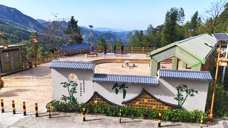 這座觀景臺(tái),仿竹紋理的亭柱欄桿質(zhì)樸自然,長(zhǎng)廊墻面上的墨竹圖與詠竹詩(shī)詞意境悠遠(yuǎn),每一處細(xì)節(jié)都緊扣“竹”主題,將奇心村“毛竹之鄉(xiāng)”的底蘊(yùn)娓娓道來(lái),生動(dòng)詮釋著設(shè)計(jì)與自然和諧共生的獨(dú)特魅力。