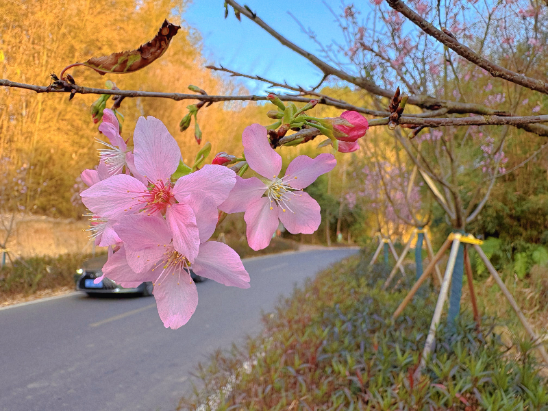 據悉,為貫徹落實省鄉村綠化三年行動計劃、綠美韶關生態建設目標任務以及始興縣鄉村綠化工作部署,2025年沈所鎮選取了沈北村以及沈南村聯合打造綠美鄉村示范帶項目。在X395線興隆橋頭到沈江公路橋段、沈江公路和X344線三岔路到紅圍段種植櫻花1163株,搭配種植灌木三角梅2000余株、翠蘆莉和滿天星5250平方米,勾勒出視覺層次豐富的綠地空間。目前正在盛開的是廣州櫻品種,其余櫻花品種將陸續在三月底前開花,觀賞期能持續一個月。