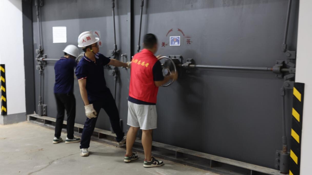 參演人員進入防空地下室后,工作人員關閉防空密閉門