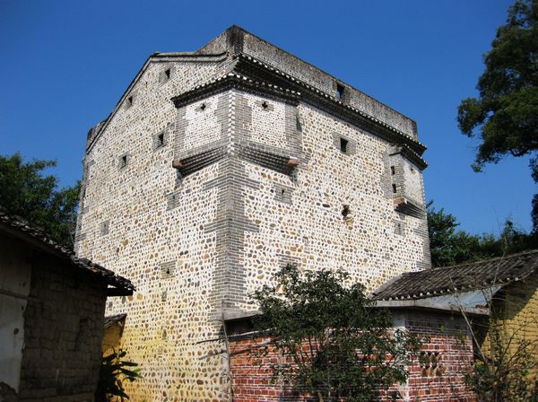 始興位于古代的交通要道上,湞江河畔,湞江是過去嶺南和嶺北軍事、經(jīng)濟交往的水路,始興又是粵北地區(qū)的糧倉。當(dāng)時南來北去的土匪、軍隊都會到始興去搶糧。當(dāng)時的政府又沒有能力保護(hù)村民的安全,怎么辦呢?那么就號召各村自己造圍樓,自己保護(hù)自己,圍樓的墻最厚的有
