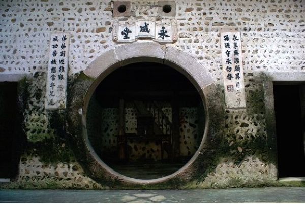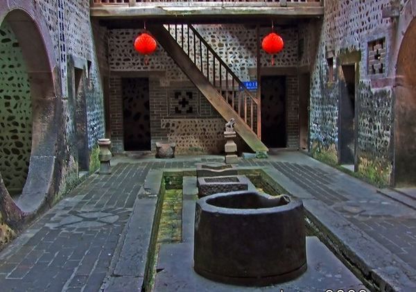 始興圍樓中同一座圍樓必須是同宗同族直系血統(tǒng)的后代,一般來說是一村一姓聚族而建,每座圍樓都有一個名稱,有的以該姓氏堂號命名,有的以吉祥語命名,如保安、磬石之安、人文蔚起、長安等,匾額落款有乾隆、咸豐、光緒等建筑年號。另外,始興圍樓的選址也反映了客家人傳統(tǒng)的風(fēng)水思想。以滿堂圍為代表的選址位于黃水河與石下水兩河交匯的河灘地上,寓意河邊大船、水漲船高;建筑座西北,朝東南,背靠馬尾獅山,朝向七重山,面向東南方水口方向。此外,始興人在建造圍樓時除了會考慮客家的傳統(tǒng)建筑理念外,還有一個重要因素就是不占用耕田。