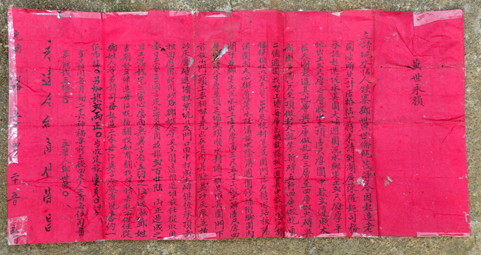 日前,始興縣村史編修工作人員在澄江鎮鐵寨村,發現了一份訂立于清朝光緒二十五年(公元1899年)的古圍樓建筑合約,當地文博專家稱,這是始興迄今為止發現的首份古圍樓建筑合約。