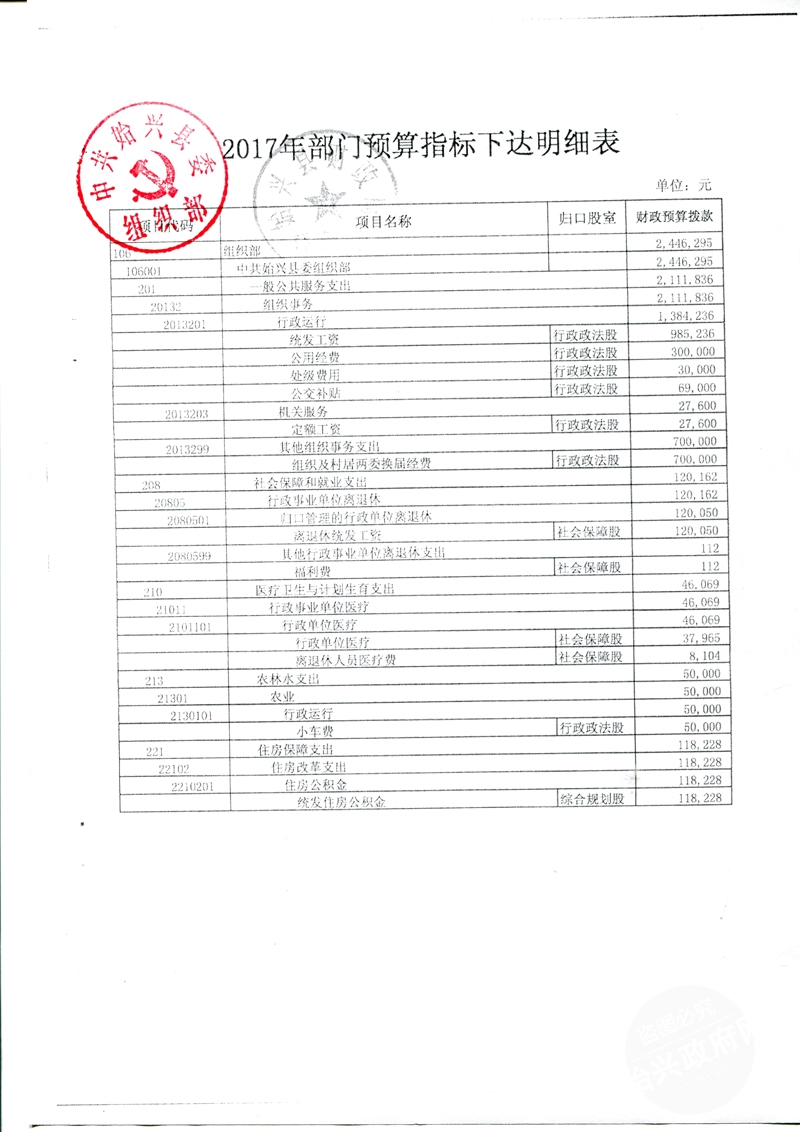 縣委組織部2017年部門(mén)預(yù)算指標(biāo)下達(dá)明細(xì)表