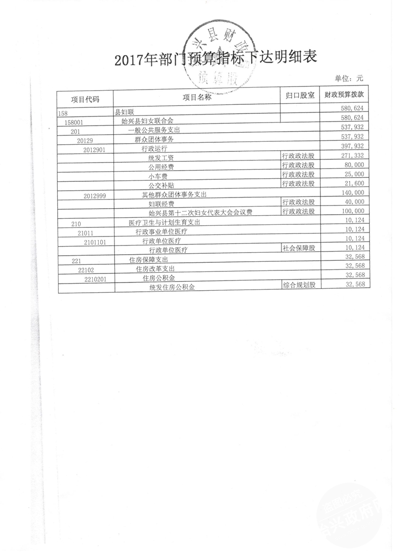 (一)部門機構設置、職能。 2017年預算組成單位共1 個,分別是始興縣婦聯,主要職能一是圍繞黨的中心工作,貫徹縣委、縣政府和上級婦聯部署的各項任務。制定本縣婦女兒童事業發展規劃,各時期婦女工作和年度工作計劃并組織實施。二是組織婦女學習馬克思主義、毛澤東思想和鄧小平建設有中國特色的社會主義理論。對廣大婦女進行各種教育和科學文化知識的培訓。提高婦女的思想道德素質和科學文化素質,增強自尊、自信、自立、自強精神。三是動員和組織婦女投身改革開放和社會主義現代化建設,分別在農村婦女和城鎮婦女中組織開展各種富有婦女特色的勞動競賽活動,鼓勵廣大婦女靈我縣的兩個文明建設建功立業。四是維護婦女兒童的合法權益。向黨政領導和社會各界宣傳婦女先進典型,做好培養選拔女干部的工作。反映婦女的意見和要求,代表婦女參與社會的民主管理、民主監督,參與有關婦女兒童法規、條例的制定。五是指導下屬各級婦聯、婦委會和縣的其他婦女組織開展業務工作,配合組織部門考察縣轄各鄉(鎮)婦聯班子,做好中青年優秀婦女人才的培養選拔和推薦工作。六是密切與其他組織的聯系與合作,加強婦女統戰工作,擴大婦女界的交往,加強對外友好合作。內設機構2個,下設機構1個。