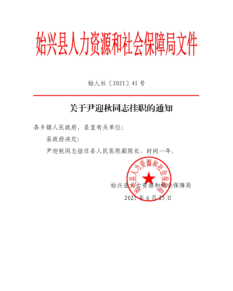 關于尹迎秋同志掛職的通知