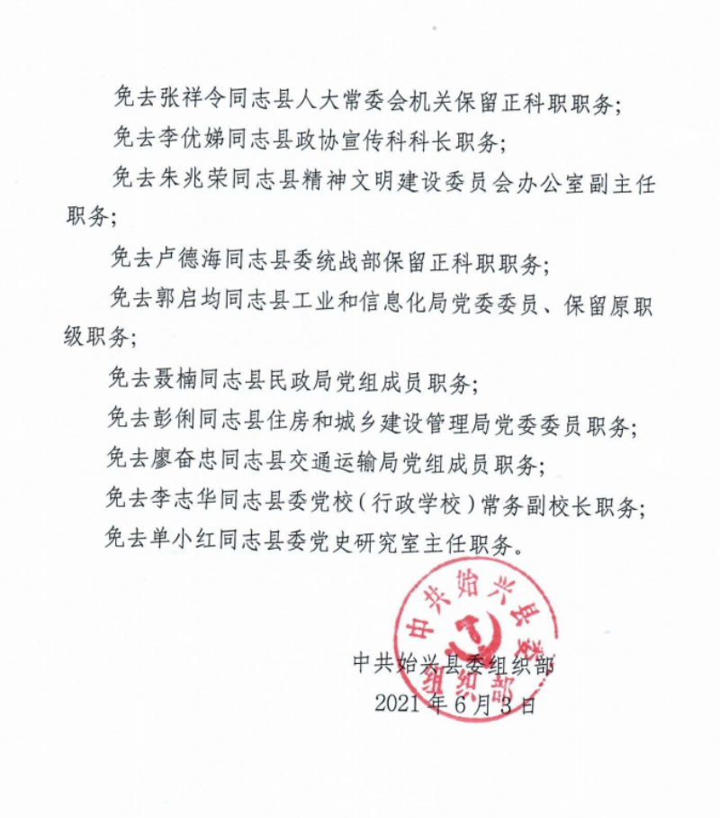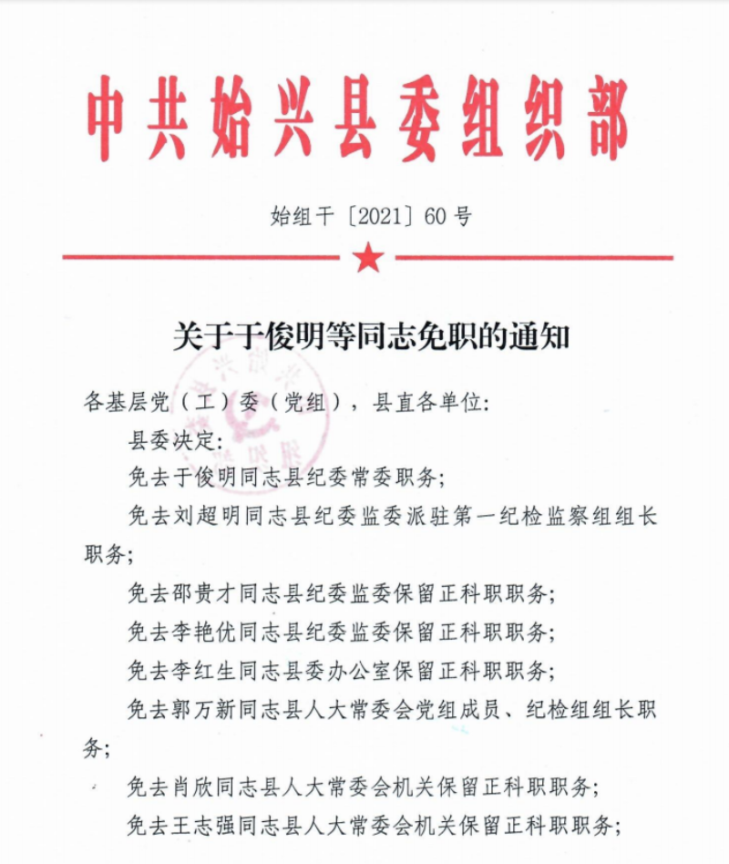 關于于俊明等同志免職的通知