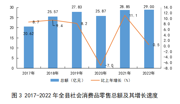 2022年,全縣實現全社會消費品零售總額29.0億元,增長0.5%;全年實際利用外資3775萬美元,是同期的21.7倍,全年實現外貿進出口總額18.56億元,同比下降11.7%(按人民幣計)。