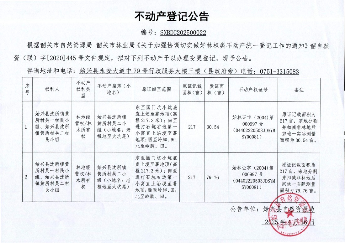 不動產登記公告(沈所鎮黃所村吳一、吳二小組)