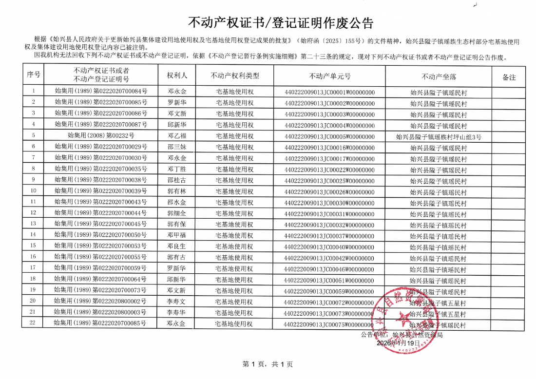 不動(dòng)產(chǎn)權(quán)證書/登記證明作廢公告(隘子鎮(zhèn)瑤族生態(tài)村)