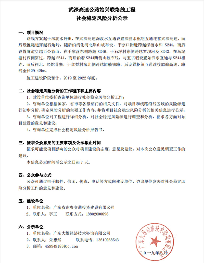 武深高速公路始興聯(lián)絡線工程社會穩(wěn)定風險分析公示